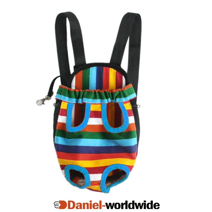 Canvas Stripe Pet Dog Carrier Legs Out Front Style Backpack