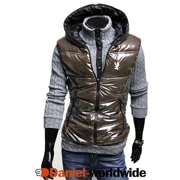 Men Hooded Vest Waistcoat Thickened Coat Jacket Eagle Embroidery Decor