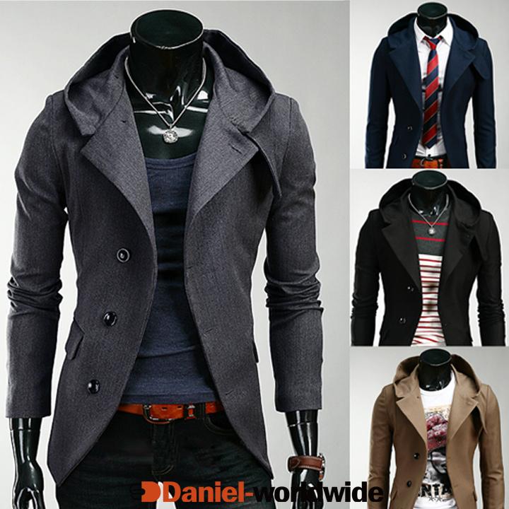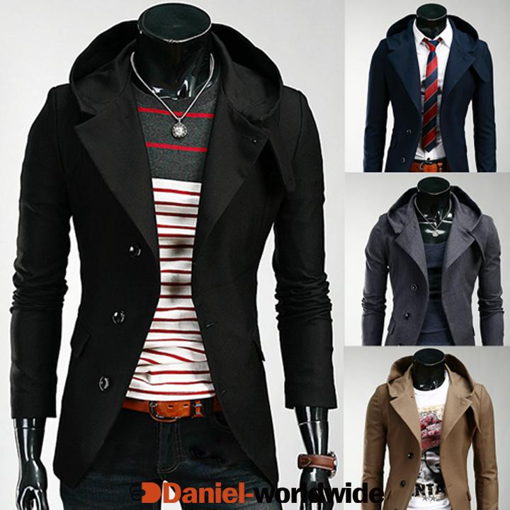 Men Hooded Slim Fit Suit Blazer Jackets Coats