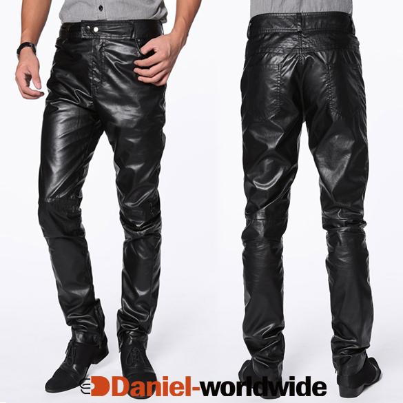 Men's Fashion Faux Leather Slim Fit Trousers Pants Black