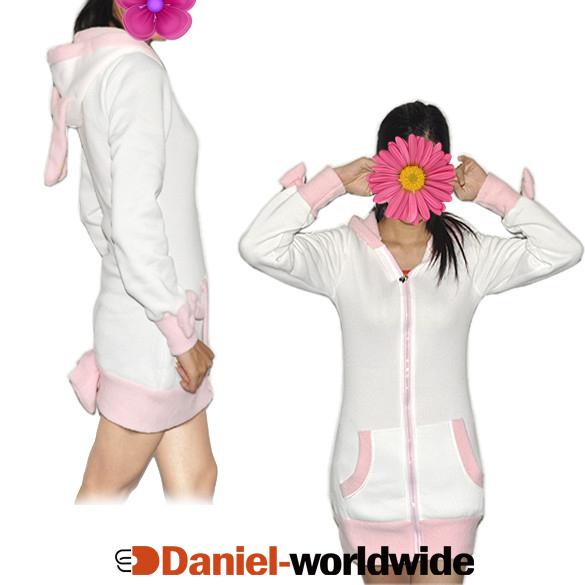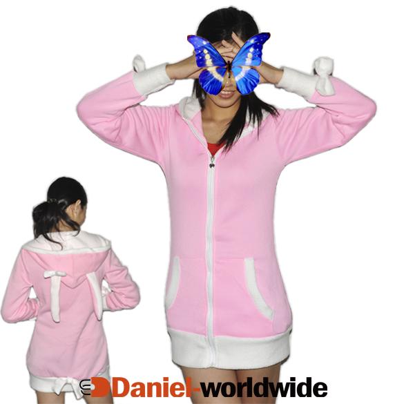 Women's Cute Bunny Ear Hoodie Coat Sherpa Jacket With Bows 4 Colors