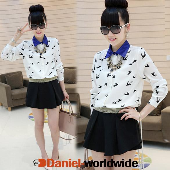New Fashion Women's Girl Long Sleeve Swallow Shape Chiffon Blouse