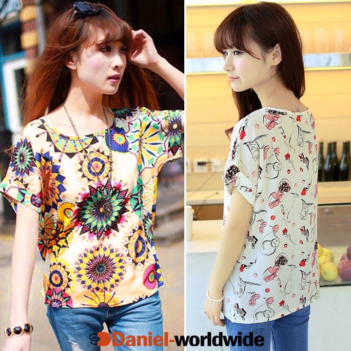> Korea Women's Chiffon Shirt Sunflower Batwing Shor..