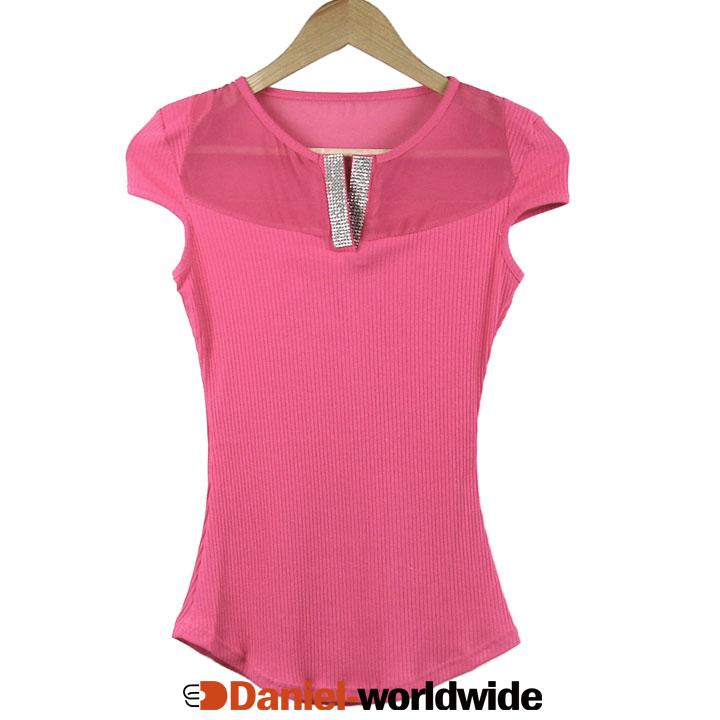 Women Shine V-neck Chiffon Short Sleeve Blouse Top T-shirt