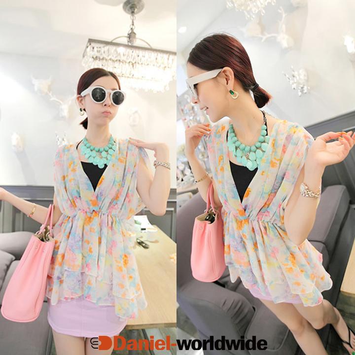 Women Floral Sheer Chiffon Shirt Top Blouse