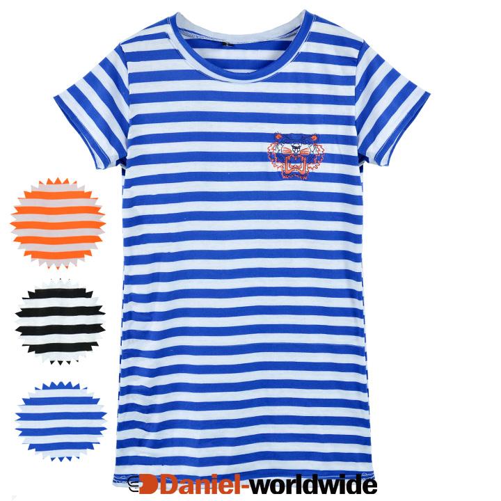 Women Stripe Short Sleeve Round Neck Long T-shirt Tops Blouse