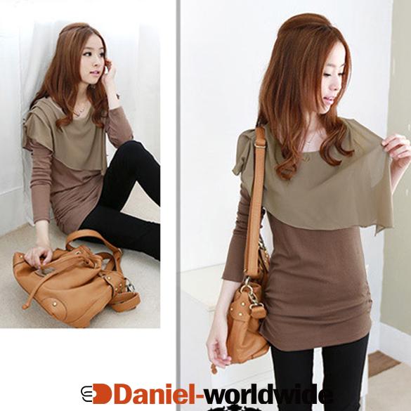 > Women's Long sleeve Slim Chiffon+Cotton Blends T-S..