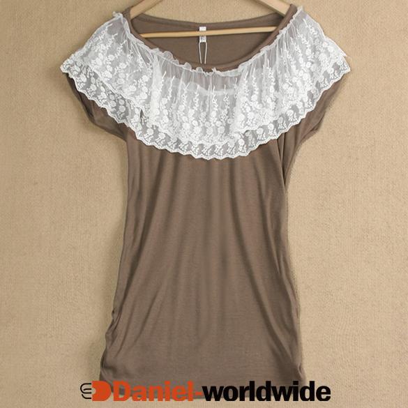 > Women Short Sleeve Lace Off-shoulder Shirt Tops Bl..