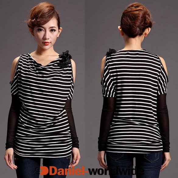 > New Women's Fashion Splicing Long Sleeve Off Shoul..