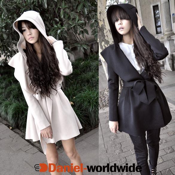 Women's Korea Hooded Coat Trench Jacket Outerwear Dress Style Tops 2 colors