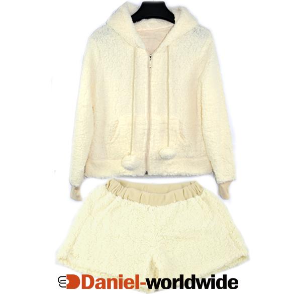 Women's Leisure Cotton Wool Loose Comfortable Autumn Suit Long Sleeve Coat + Shorts Set New