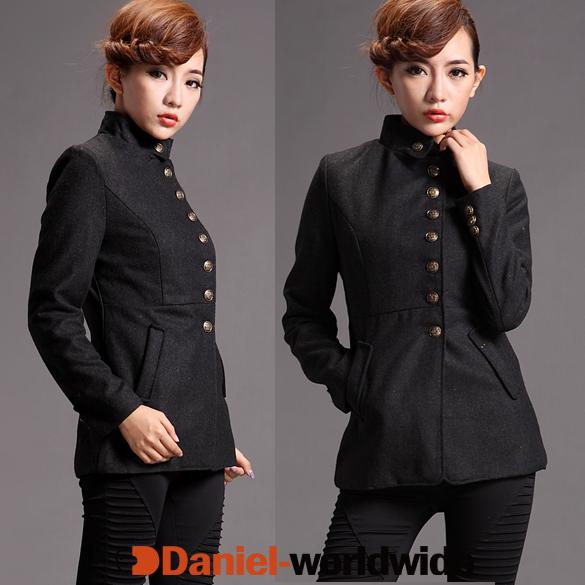 Women's Slim Fit Stand Up Collar Winter Woolen Trench Coat Jacket Outwear