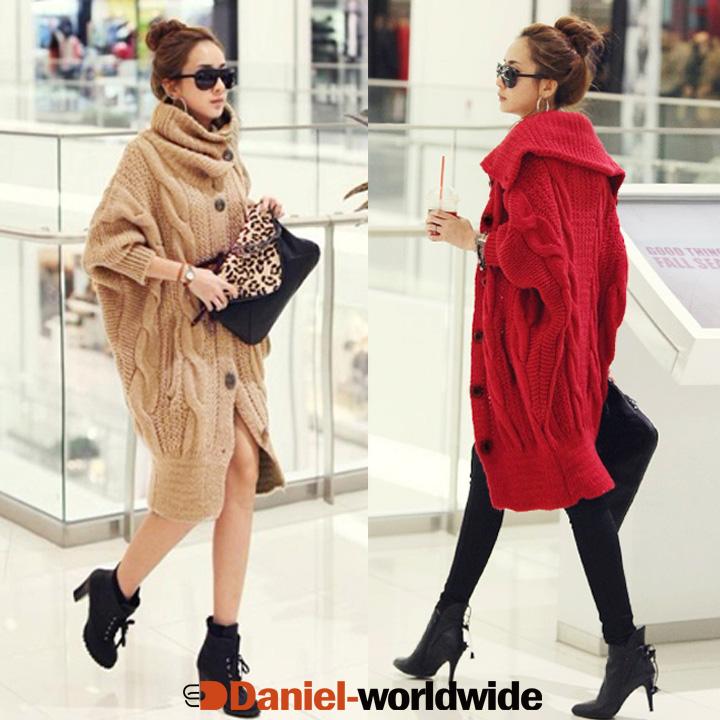 Women Thicken Knitting Batwing Cardigan Outwear Loose Plus Size Sweater Coat