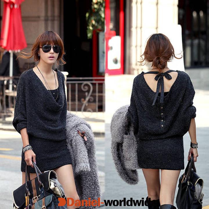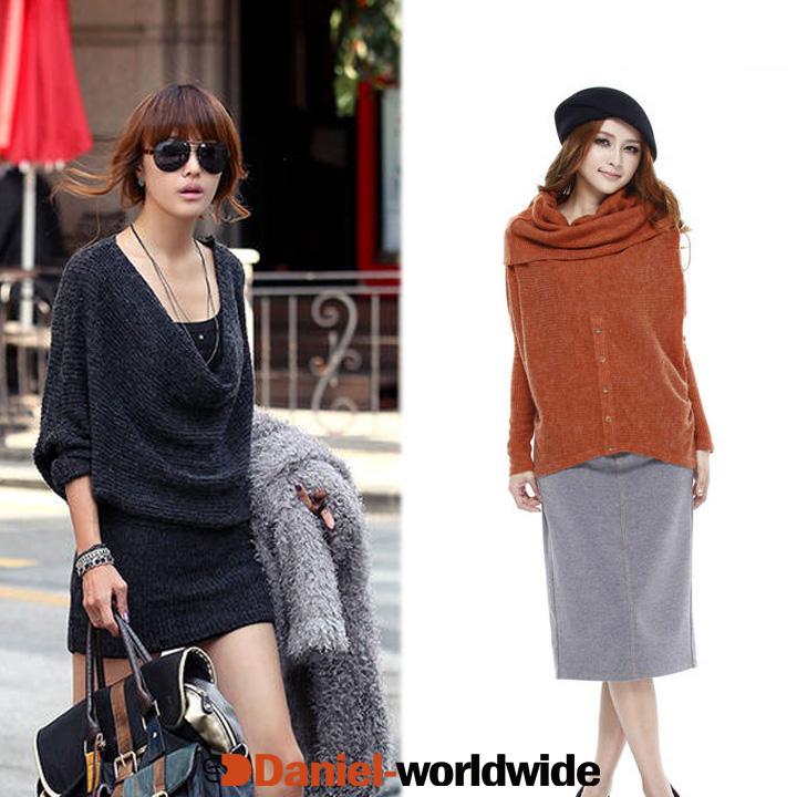 Women's Knit Batwing Sleeve Loose Knitted Dress Tops Multi-way Wear