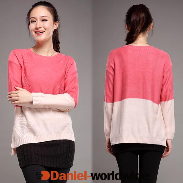 Korea Women's Long Sleeve Round collar loose irregular knitwear sweater