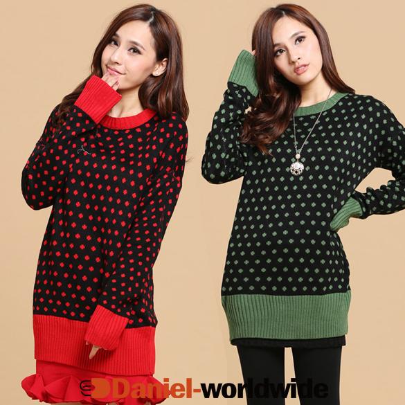 New Korea Womens Loose Sweater Coat Casual Long Round Neck Thicken Knit Pullover