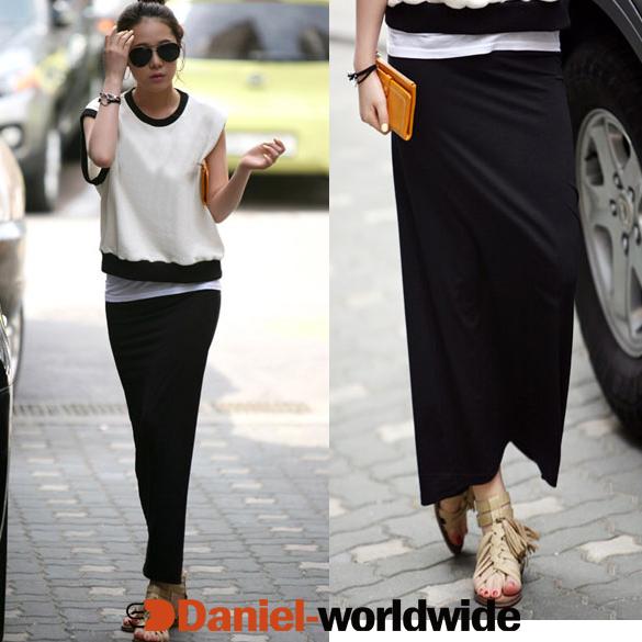 New Ladies' Multi Colorful Lovely A line Stretch Long Skirt Elastic Waistband Retro women's Elegant Dress