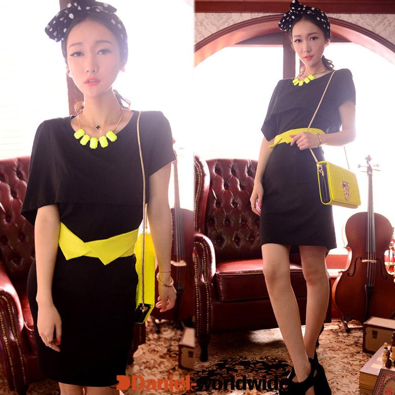 Women's Two Tones Splicing Set Shirt Tops+ Over Hip Skirt