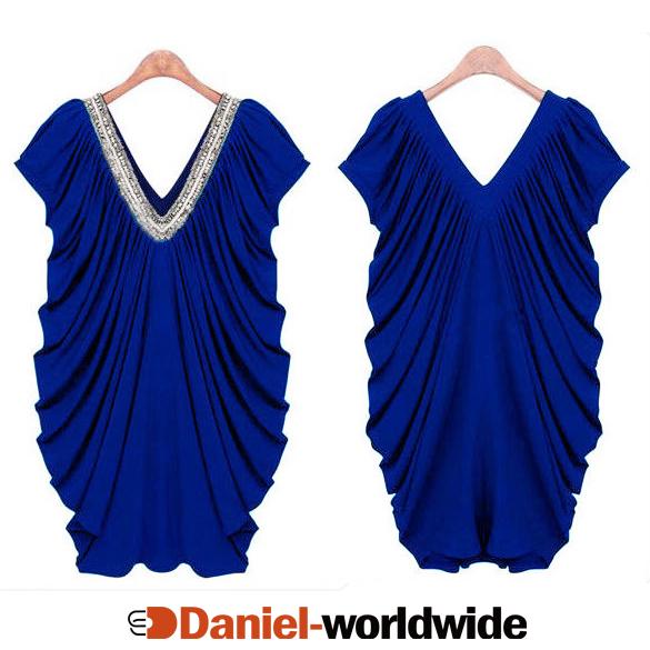 New Fashion Women's Ladies Nail bead V-Neck Summer Slim Dress S/M/L/XL