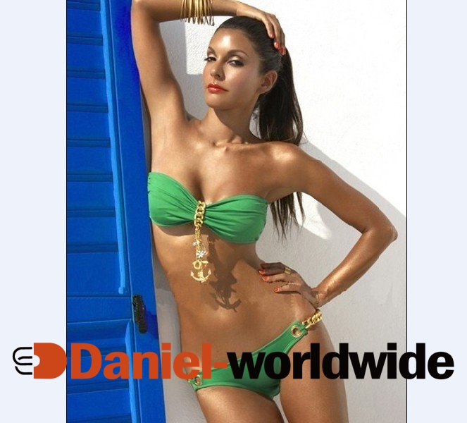 Charming Two-Piece Pure Color Metal Circle Embellished Bandage Bikini Green