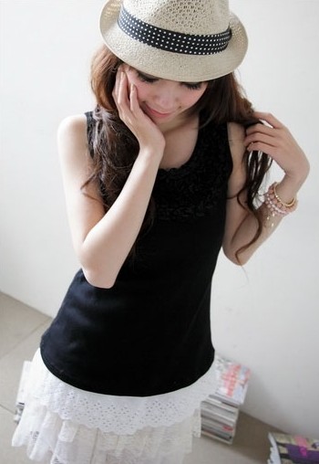 > Fashion Stereo Rose Embellished Cotton Vest Black
