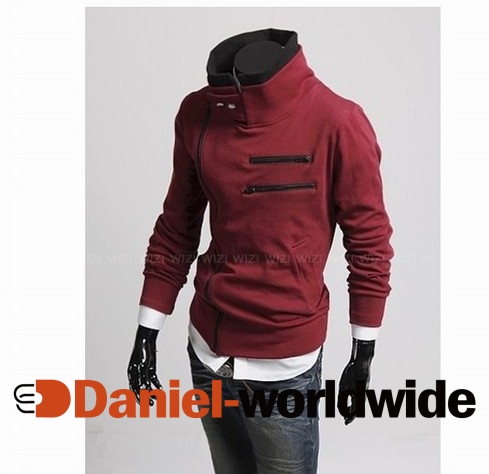 Stylish Men’s Zipper Embellished Stand Collar Sport Coat Wine Red