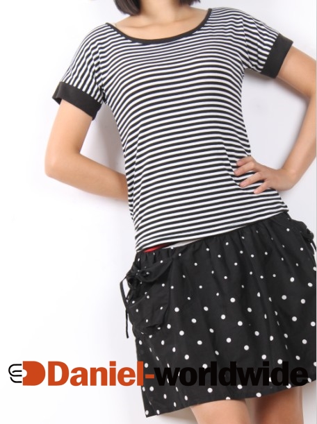 > Valuable Round Neck Short Sleeves Stripe T-shirt A..