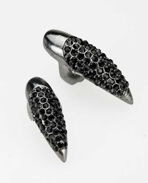 Special Rhinestone Embellished Fake Nail Needle Ring Black (Little Finger)