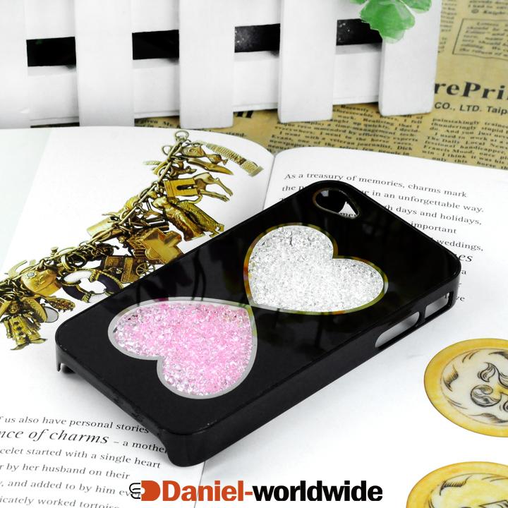 Black Cute Bling Love Heart Diamond Crystal Case Cover For iPhone 4 4S