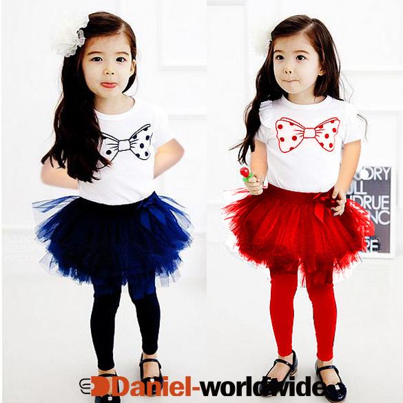 Baby Girl Bowknot Short Sleeve T-shirt + Tutu Skirt Pants Set