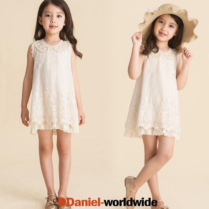 Princess Kid Girl Lace Sleeveless Pearls Doll Collar Dress
