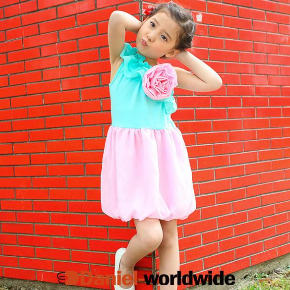 New Children Kid Girls Cute Flower Sleeveless Party Dress Bubble Dress 3 Colors