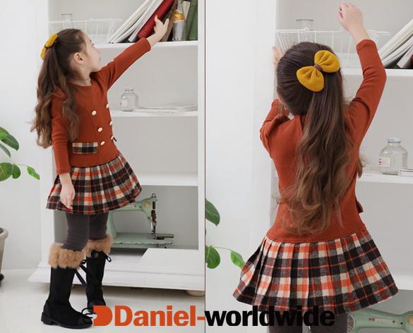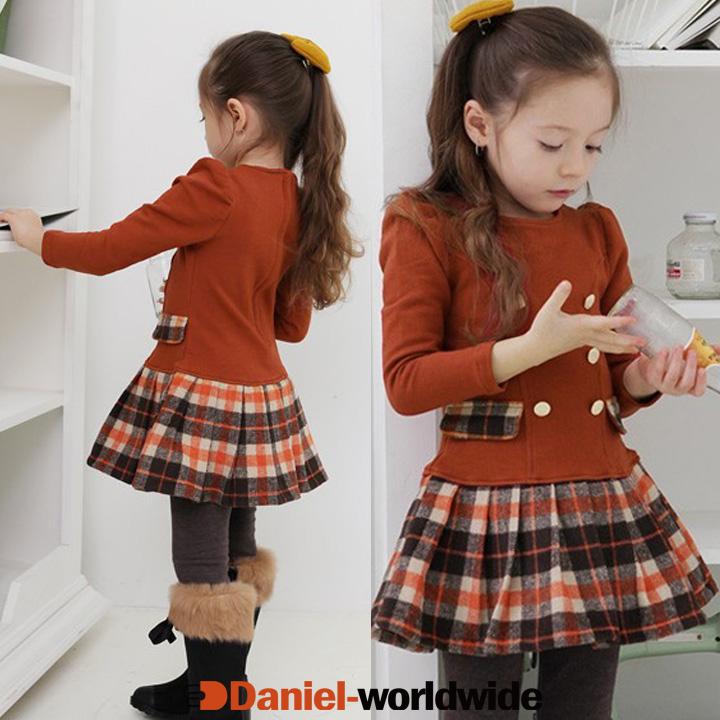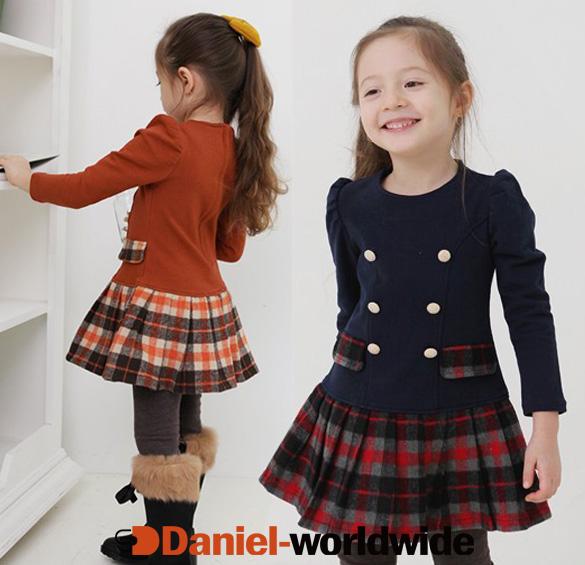 Girls' beautiful one piece plaid dress, you can wear with leggings.