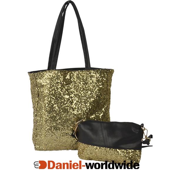 Women's Girls Fashion Concise Bucket Bag Gold/Silvery Paillette Shoulder bag Handbag