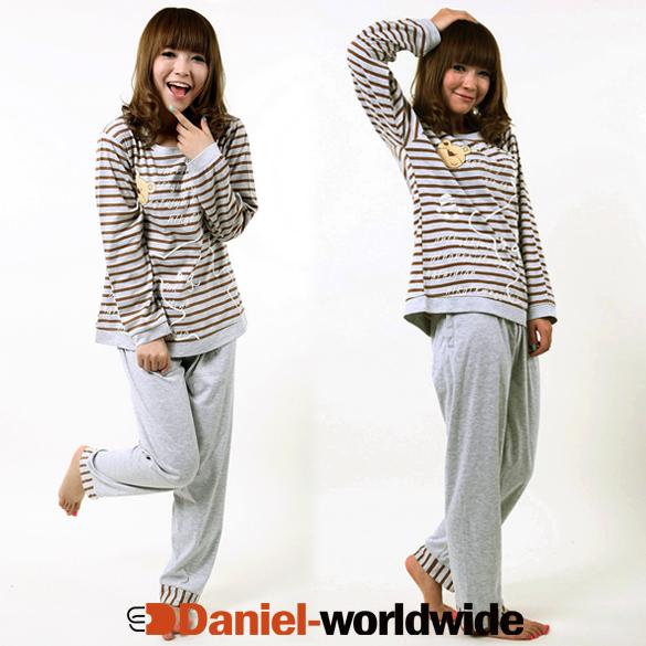 Women's Cute Stripe Long Sleeve Two-Piece Set Sleepwear Pajamas Home Wear