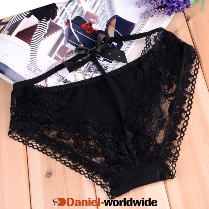 Ladies Bowknot Deep V Panties Briefs Underpants Lace Lingerie Underwear