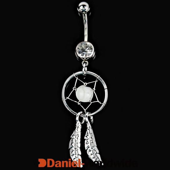 Crystal Gem Catcher Dangle Belly Navel Barbell Button Bar Ring