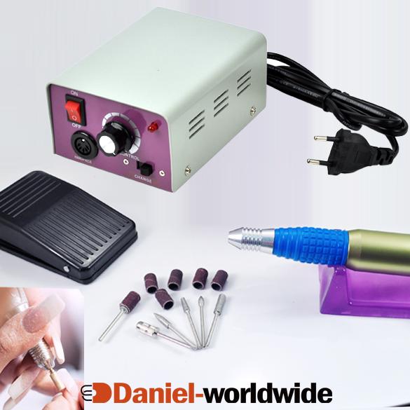 Electric Nail art Glazing Drill Machine Kit Manicure+6 Bits+ Foot Pedal