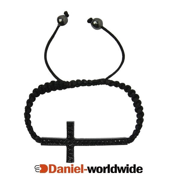 Cross Curved Side Ways Crystal Beads Handmade Chain Bracelet Adjustable