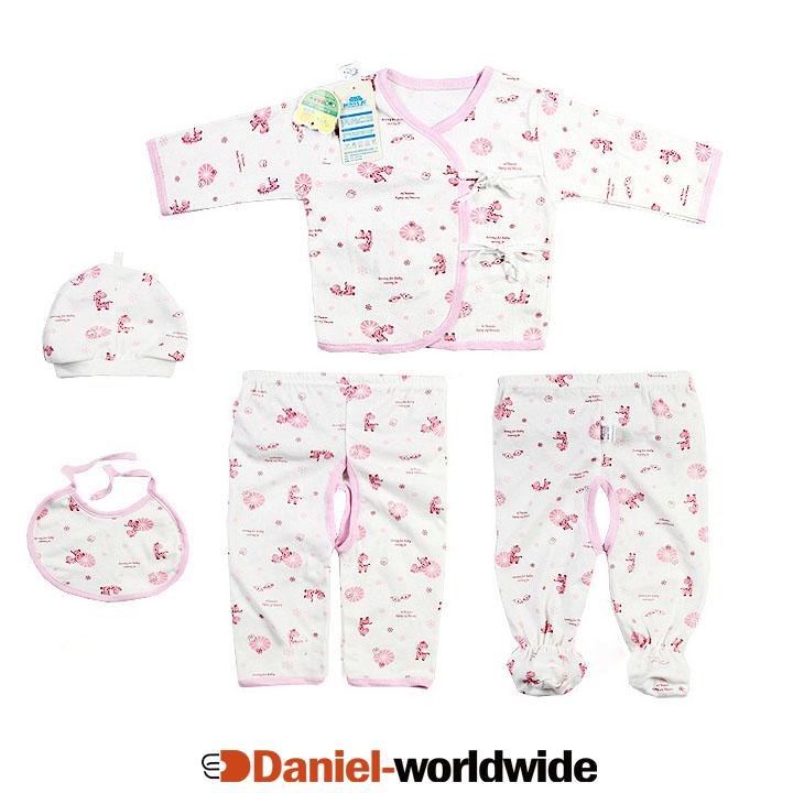 Baby Newborn Boys Girls Clothing Five-piece Suit Set Tops + Pants + Tight + Cap + Bib Deer Pattern