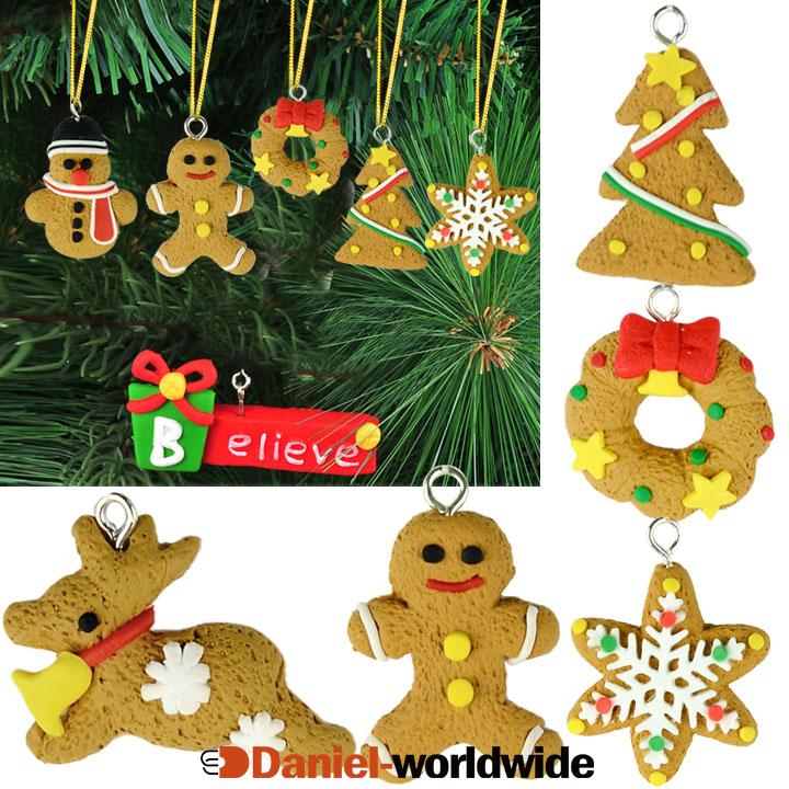 6Pcs Christmas Ornament Polymer Clay Drop Pendants Tree Hanging Gift