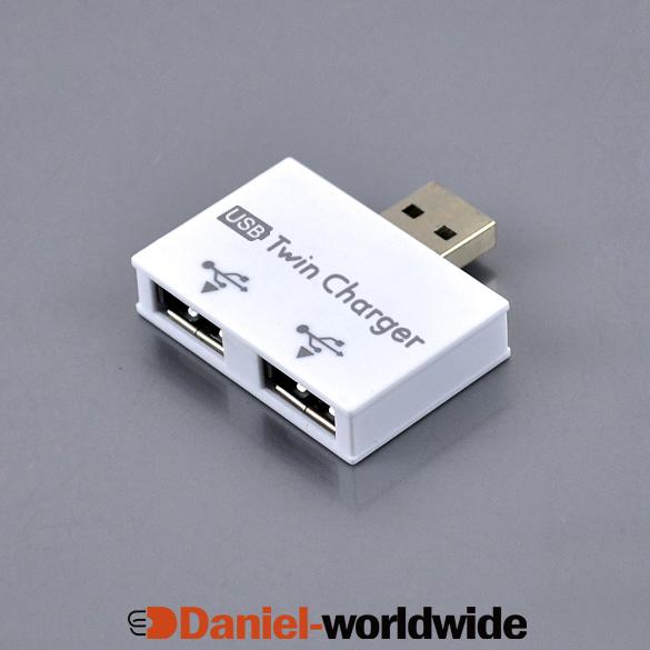 New White 2 Double Output Port USB 2.0 Charger HUB for iPhone / iPad DC 5V