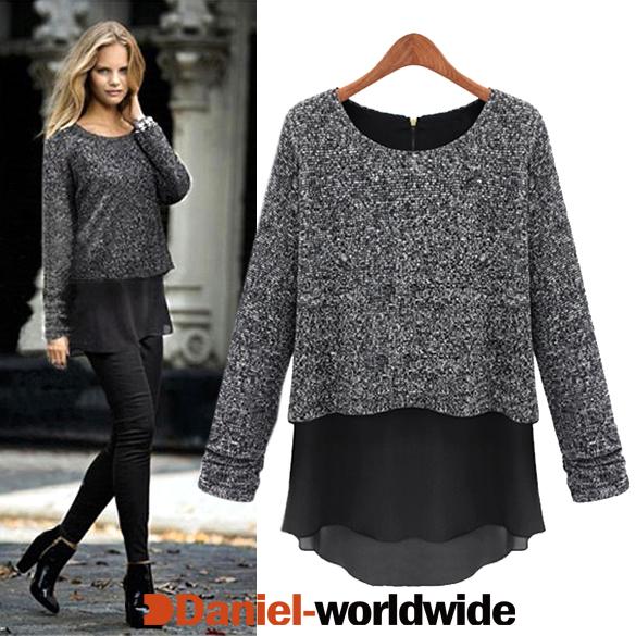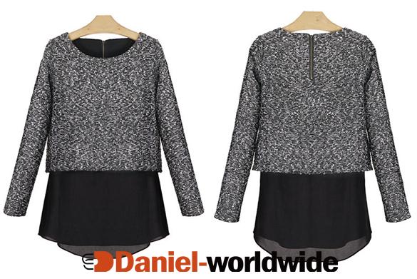 > Women's Long Sleeve False Two Piece Thicken Knitwe..