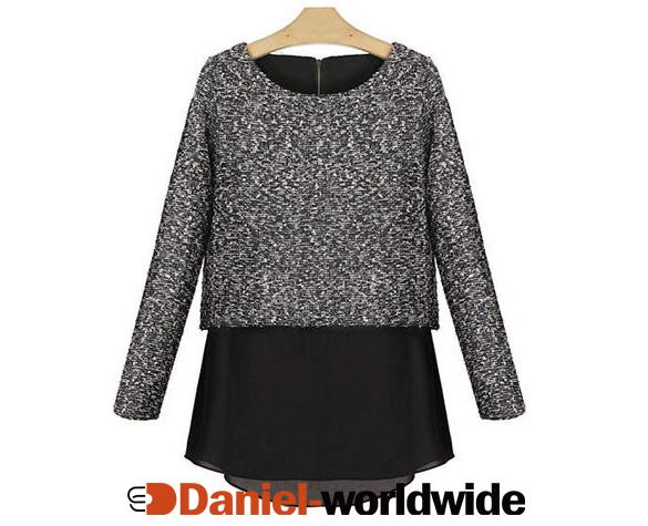 Women's Long Sleeve False Two Piece Thicken Knitwear Top Blouse