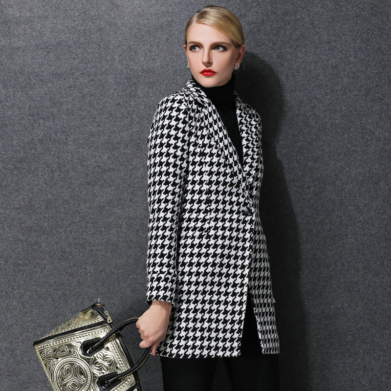 2014 hot Europe winter overcoat large size thousands of birds thinck woolen coat XL,2XL,3XL,4XL,5XL