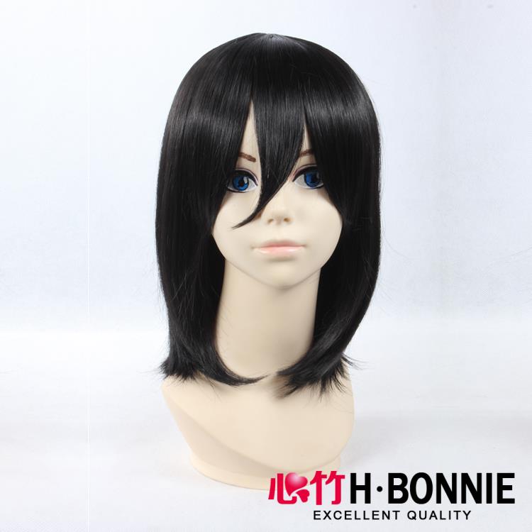 Women's Medium Long Straight Black High Temperature Synthetic Bobo Wigs Adult Mikasa Ackerman Attack On Titan Anime Cosplay Wig