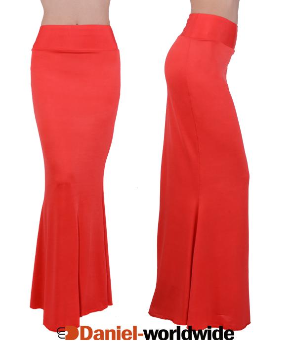 > Long Foldover High Waisted Elegant Maxi Skirt Soli..