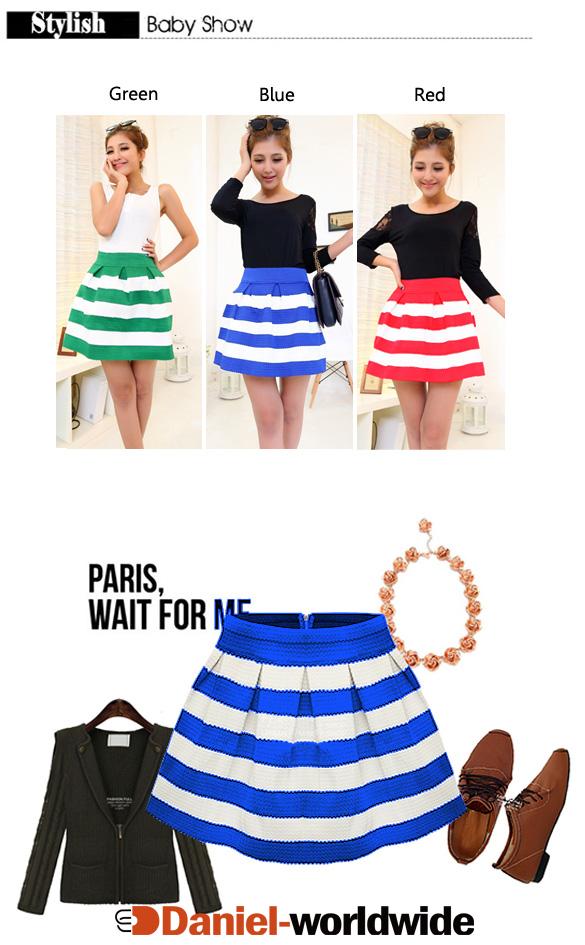 >   Product   >   Skirts   >   Women Stripe High Waist Splicing Color Stitching T..