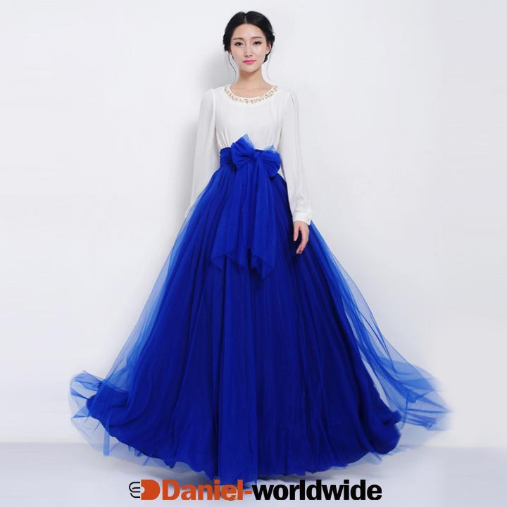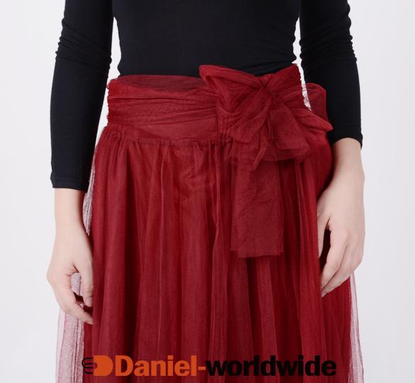 Fairy Empire Waist Gauze Pleated Multi-layer Swing Long Skirt + Bowknot Line