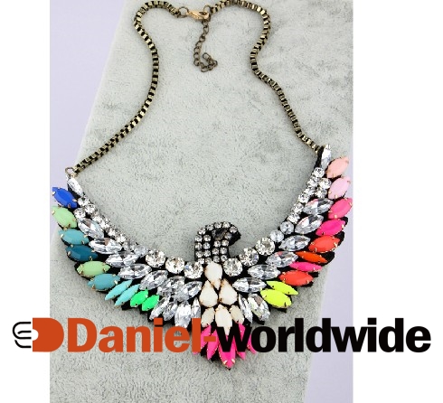 Shinning Rhinestone Embellished Eagle Shaped Colorful Necklace